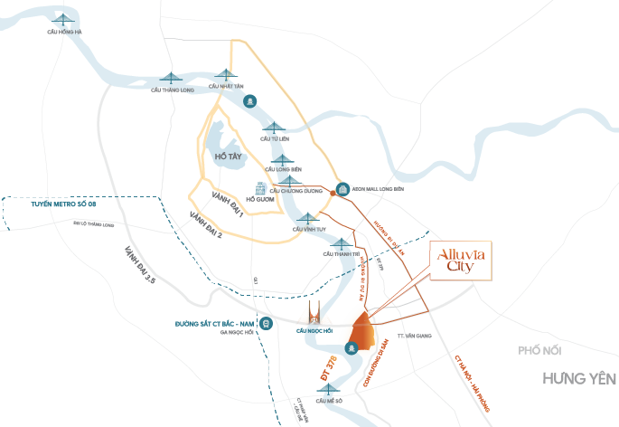 Nằm tại Alluvia City, Alumi sở hữu vị trí vàng đắc địa, “Gần trung tâm Hà Nội hơn 85% các địa bàn còn lại của Hà Nội” trong vòng bán kính lấy hồ Hoàn Kiếm làm tâm điểm, cách trung tâm Hà Nội chỉ khoảng 12 km, nằm trong vùng phát triển năng động phía Đông Nam Thủ đô – nơi hội tụ hàng loạt công trình hạ tầng trọng điểm.